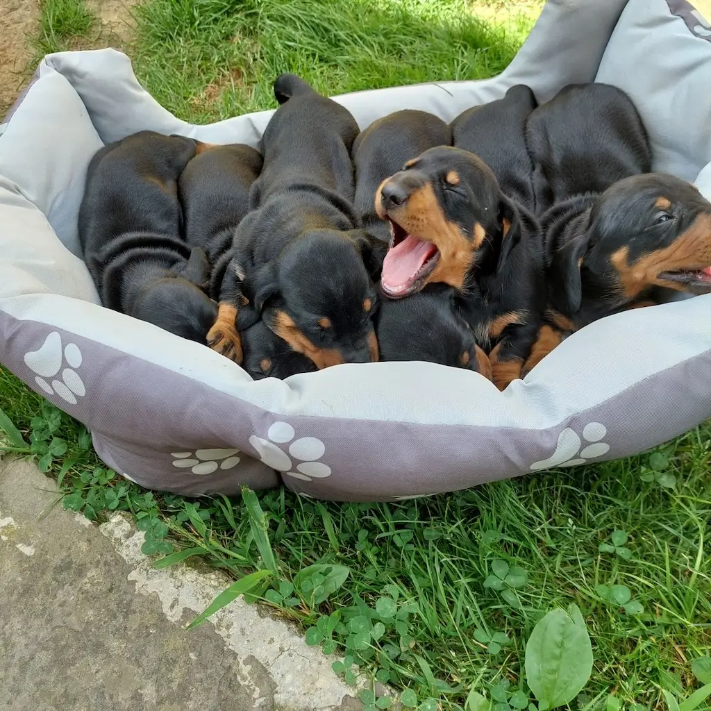 zadá šteniatka jazvečíka hladkosrstého štandardného z vrhu „D“.