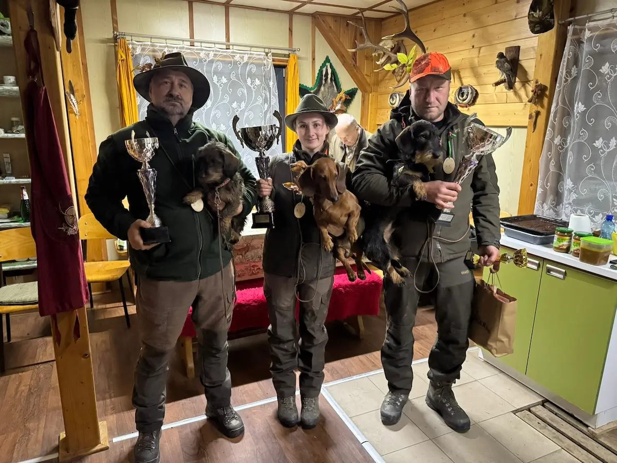 Po roku, 7.11.2025 sme sa znovu stretli v revíry v užívaní PS Nedožery – Brezany na týchto, čoraz populárnejších skúškach. Tento raz štartovalo až 15 dvojíc, deväť na 20 – hodinových a šesť na 40 hodinových stopách. Stopové dráhy boli opäť perfektne pripravené. Vysoký počet štartujúcich spôsobil meškanie na začiatku dňa, z dôvodu náročnej logistiky na rozvoz, nasadzovanie štartujúcich na prácu na stope a odvoz rozhodcov na koniec stopy. Nakoniec sa všetko podarilo a práce sa rozbehli. Na konci dňa už pri svetle ohníkov sme konštatovali vysokú úroveň štartujúcich dvojíc.